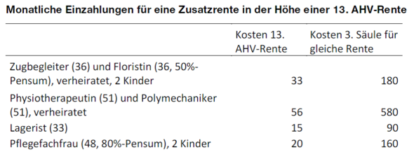 Beide Wege – die Erhöhung der AHV und die Einzahlungen in die 3. Säule - kosten etwas. Das ist klar. Für die grosse Mehrheit der Bevölkerung - für die Lehrerin, für den Elektriker, für die Musikerin oder den Zugbegleiter ist die 13. AHV-Rente die Lösung mit dem klar besten Preis-Leistungsverhältnis. Die schleichende Privatisierung über einen Ausbau der 3. Säule lohnt sich nur für Schönheitschirurgen, Hedgefundmanager, Wirtschaftsanwälte und andere mehr oder weniger nützliche Berufsgruppen. Weil sie von den Steuerrabatten profitieren.
